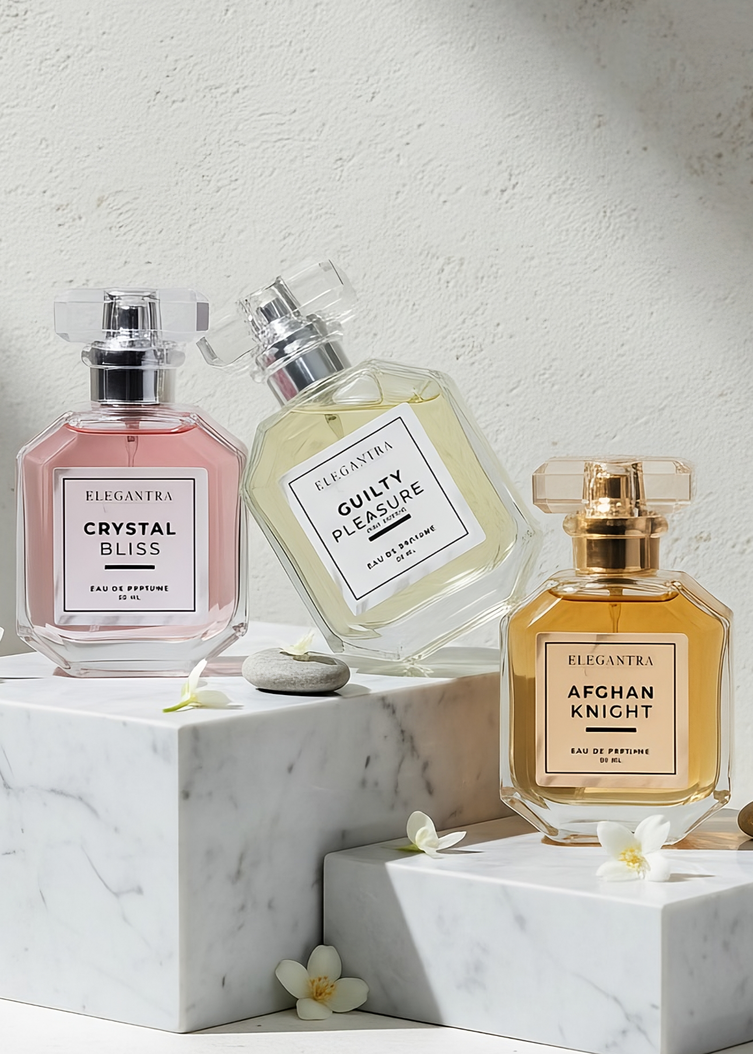 Elegantra offers a wide selection of luxury perfumes, including floral, woody, oriental, and fresh scents, catering to every preference and occasion.