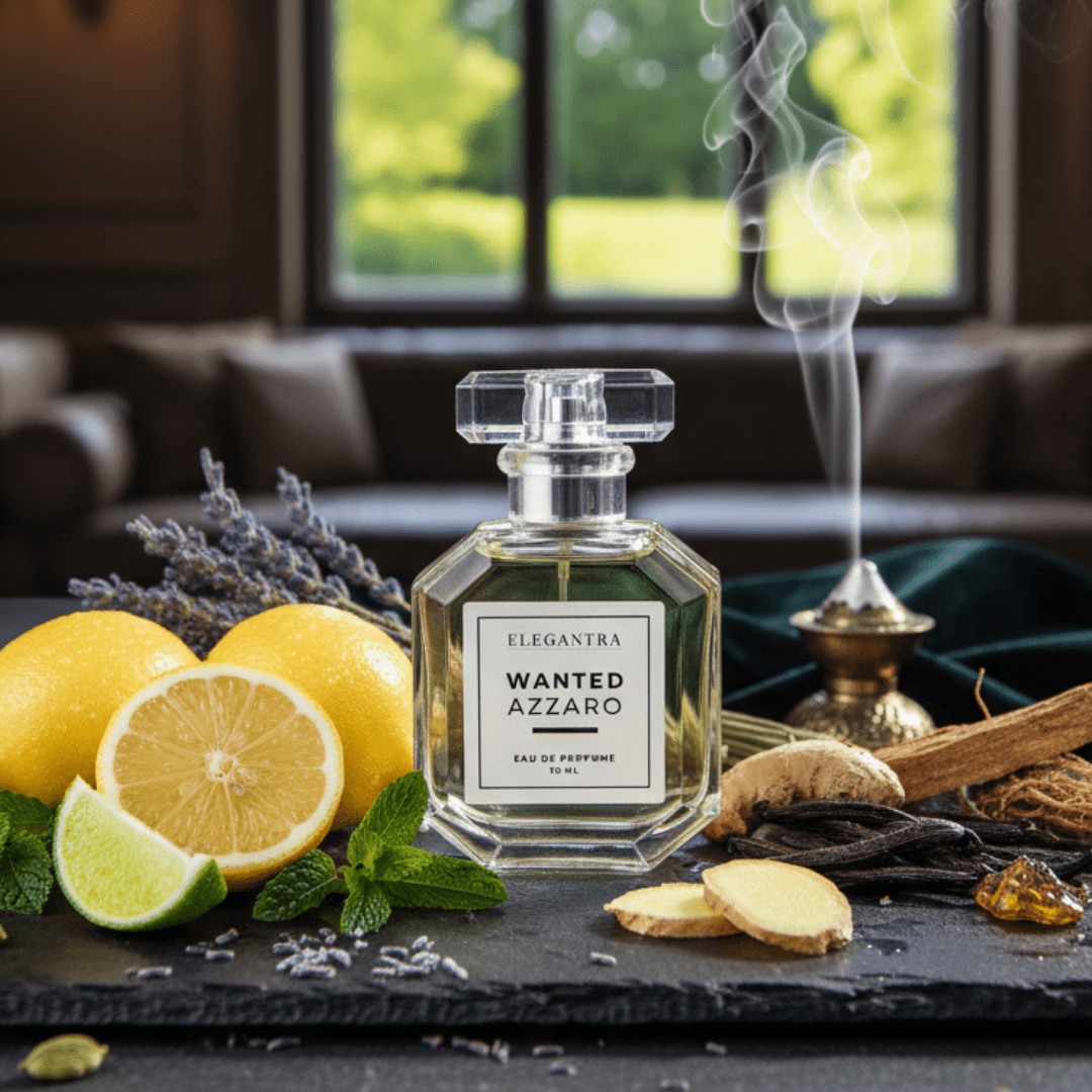 Azzaro Wanted: Experience a refreshing burst of lemon and mint, seamlessly blended with a lively heart of apple and cardamom. The fragrance settles into a powerful and long-lasting base of woody warmth, leaving a bold and unforgettable trail.
